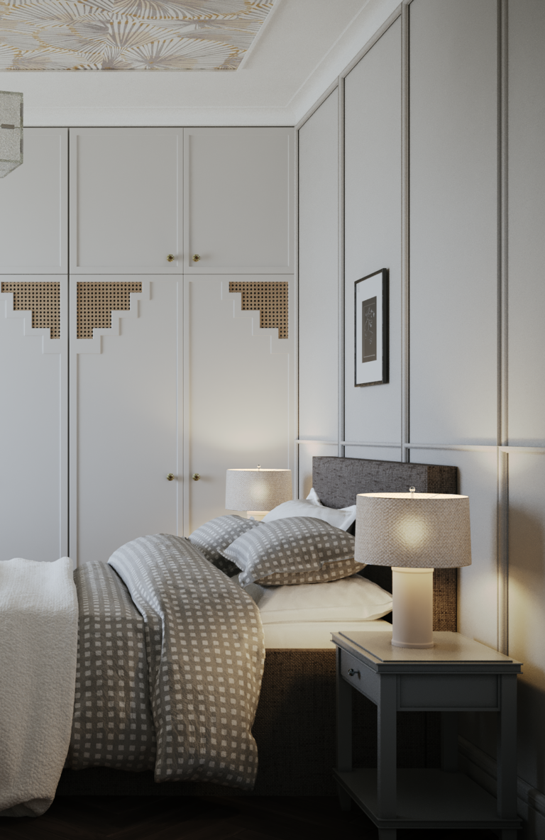 Sypialnie są oazami relaksu, gdzie łóżka z litego drewna stwarzają idealne miejsce do wypoczynku. Miękkie dywany, belgijskie tapety najwyższej jakości i delikatne dodatki tworzą przytulną atmosferę.