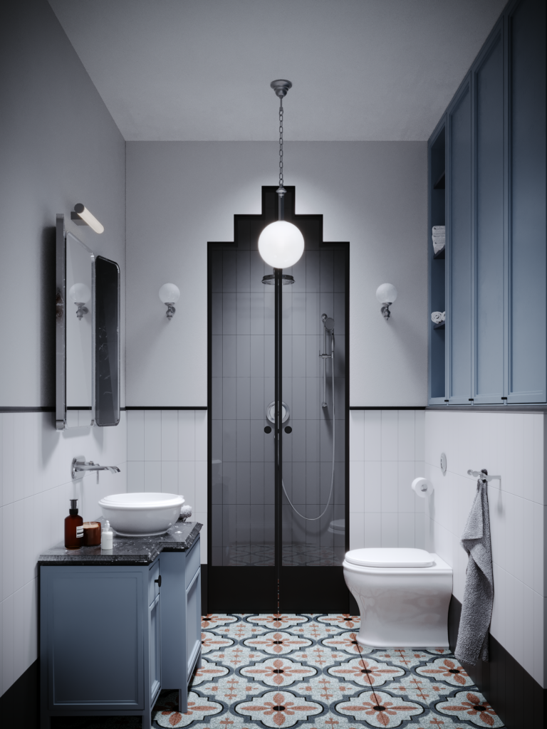 Łazienki są urządzone w minimalistycznym stylu, z szafkami pokrytymi rzadkimi fornirami, a ściany i podłogi zdobią głownie włoskie ceramiki – dodając charakteru i elegancji.