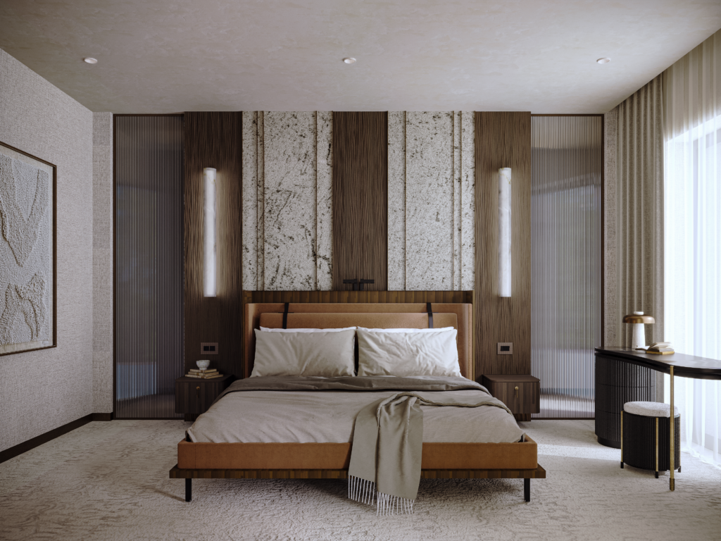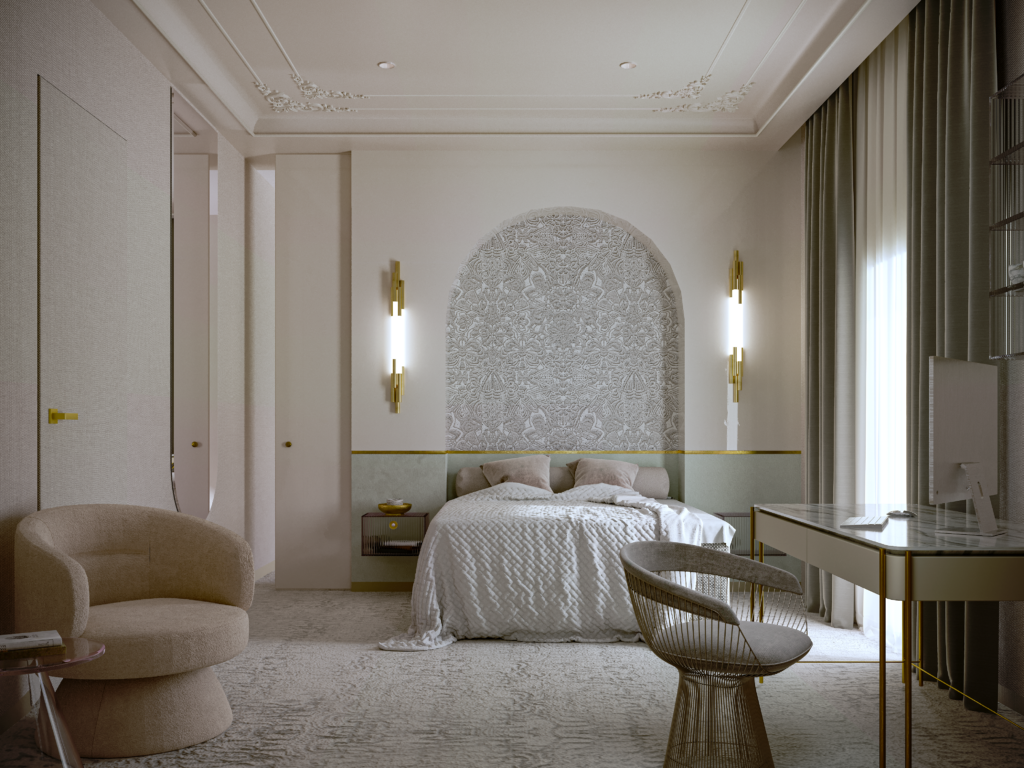 Sypialnie są oazami relaksu, gdzie łóżka z litego drewna stwarzają idealne miejsce do wypoczynku. Miękkie dywany, belgijskie tapety najwyższej jakości i delikatne dodatki tworzą przytulną atmosferę.